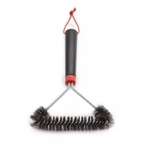 This three-sided grill brush is made to remove grease and debris from cooking grates of all sizes. The handle design provides a secure grip when brushing off stuck-on food or cleaning tight spaces. Use this grill brush to clean your grates before each use so that your grill lasts longer and your next meal is as delicious as the one before.