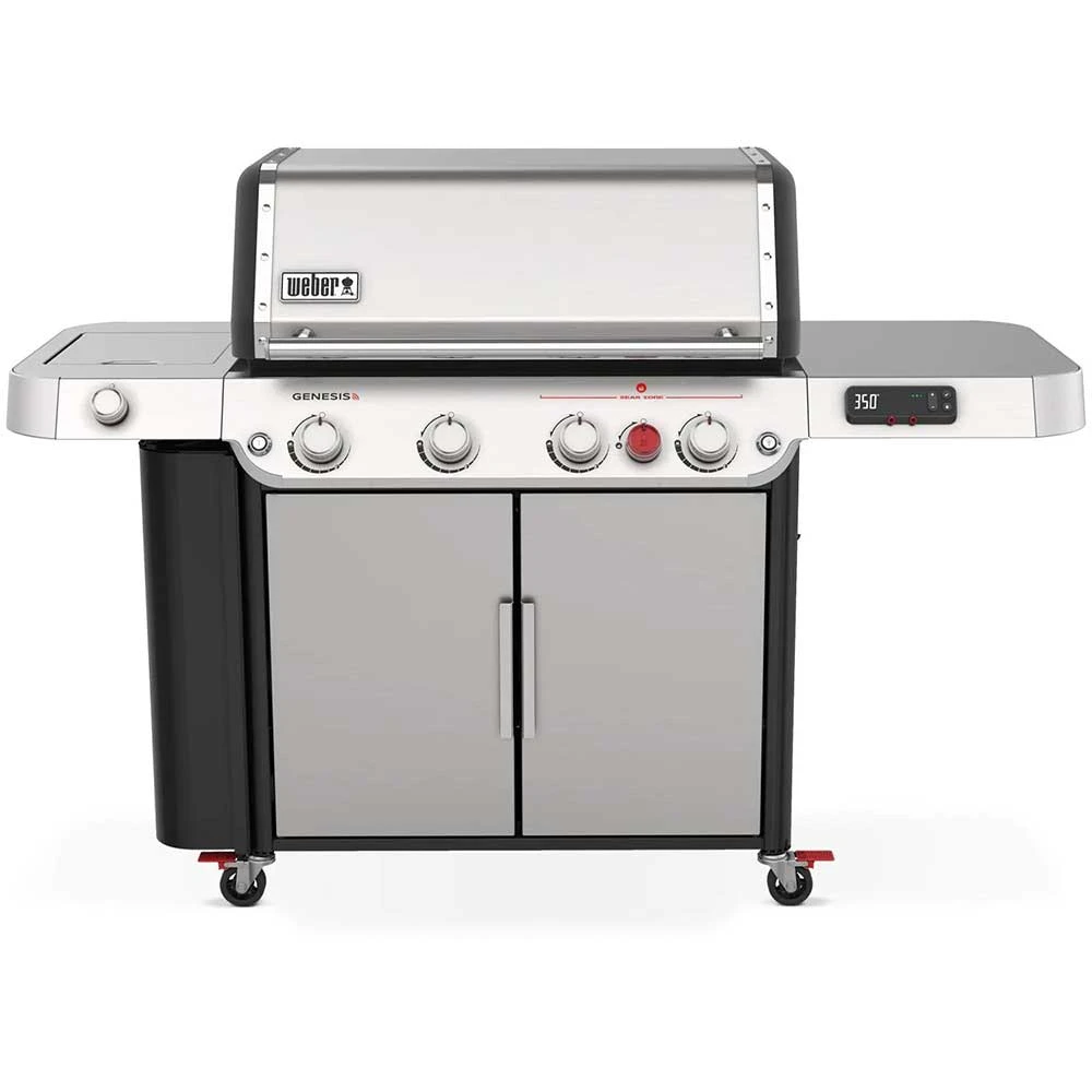 This top-of-the-line Genesis grill has all the bells and whistles, or should we say lights and burners. A pair of integrated, motion-sensing LED lights in the lid handle illuminate the entire grill surface and side tables when activated, ensuring nighttime never runs you off the grill; remote control knob lights, meanwhile, enhance visibility in the dark and add a modern aesthetic. As for the burners, the Weber Genesis SPX-435 smart grill includes a handy side burner for sauteing veggies, boiling sides, or heating up sauces while the main grilling area takes care of the heavy lifting. Those 4 main burners feature a proprietary, ported design to produce the most efficient and even flame for consistently precise heat and reliable ignition.