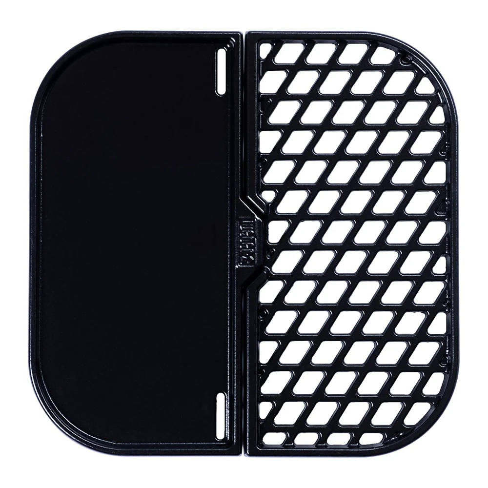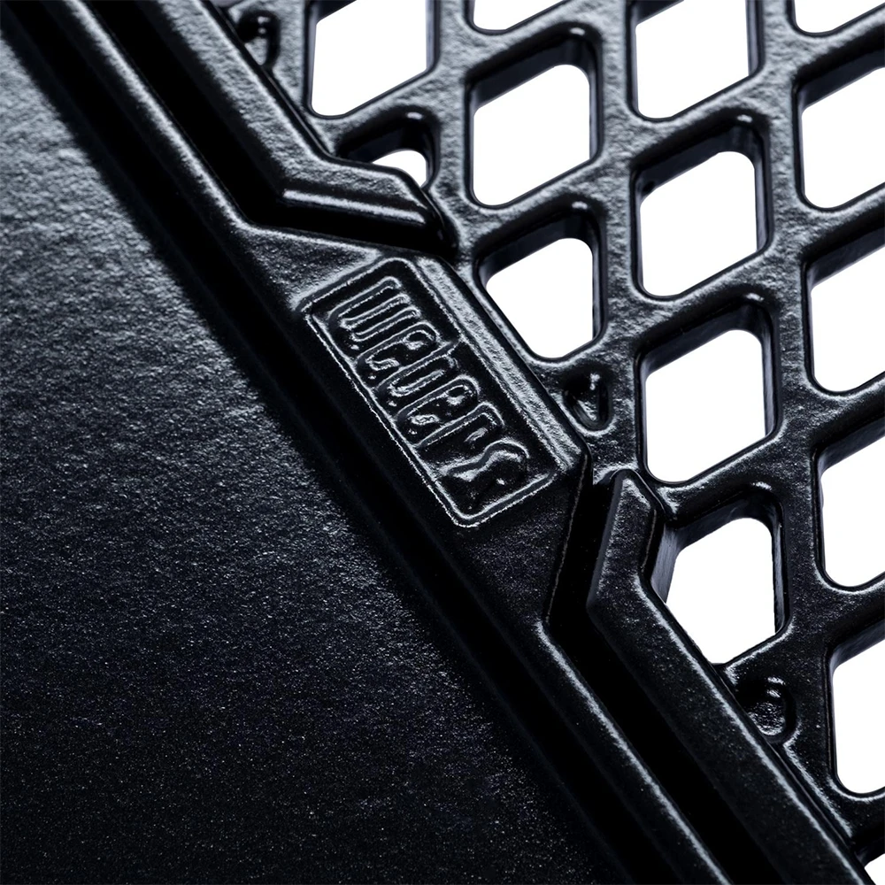 Simultaneously grill and sear with the Weber Grill & Griddle Station. This compact design maximizes space with a griddle for flat top grilling and a cooking grate that is perfect for searing. The Grill & Griddle Station is made with procelain-enameled cast iron, making it easy to clean and have long-lasting use. For use with the Gourmet BBQ System on Weber charcoal grills, SmokeFire wood fired pellet grills, Genesis/Genesis II, and Summit gas grills.
