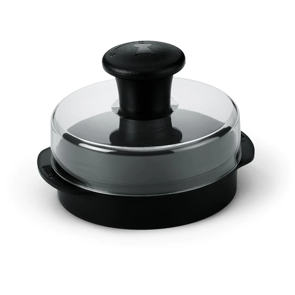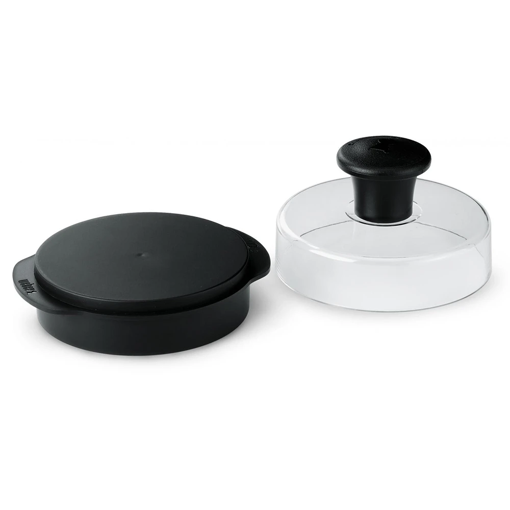 Get the most out of your grill with Weber Original accessories that are a must-have for every backyard cookout. This burger press produces uniform 1/4 or 1/2 pound burger patties by flattening the meat into perfectly round shapes with a dimple in the middle. The dimple keeps the burger from puffing up in the center, which allows the juice to remain in the rest of the burger. It has a nylon grip removable handle and plastic base with lid. The handle detaches for easy cleanup. The press is also dishwasher safe.