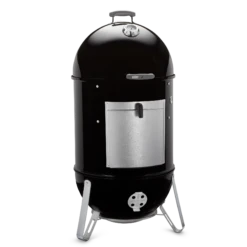 You are going to want to take your time to enjoy every bite of deliciousness prepared in this massive slow-cooking marvel. The Weber Smokey Mountain Cooker features two 21-1/2 inch diameter steel-plated cooking grates for a whopping 726 square inches of cooking area, ideal for smoking everything from pork to chicken to a full-sized turkey. A rust-resistant aluminum fuel door allows you to adjust or add charcoal while cooking and the adjustable airflow vent allows for controlling the temperature. The silicone thermometer probe grommet lets you monitor your food temperature without losing any heat. A porcelain-enameled water pan adds steam to the smoking process so the meat stays moist and tender. The smoker is constructed of premium-grade steel coated with porcelain enamel inside and out. Also included is a cover to protect your smoker while not in use.