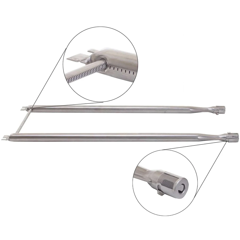 This Weber Replacement Stainless Steel Burner Tube Set fits the following Weber gas grills: Spirit 500 and Genesis Silver A. Set includes 2 stainless steel burner tubes, 1 crossover tube, hardware, and an instruction sheet.