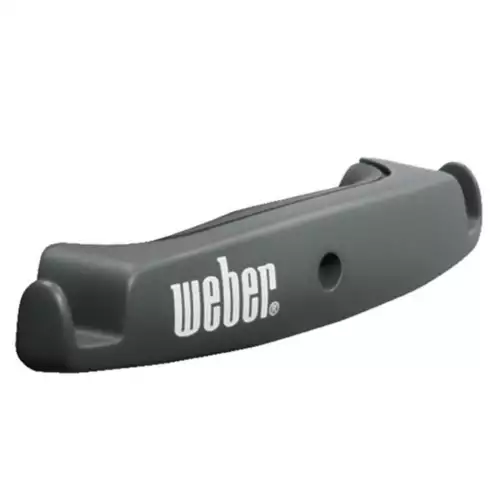 Weber Kettle tool hook handle. This upgraded Kettle handle has two integrated hooks to help keep your grilling tools organized. Fits all Weber charcoal kettles. Dark gray handle measures 6 inch long and features the Weber name logo printed on top. Genuine Weber Part.