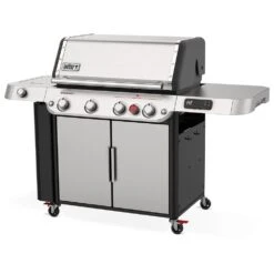 Weber Q2200 Portable Propane Gas Grill with Side Tables on Scissor Cart (WEB-54060001-WEB-6557) offers surprising utility in a seriously compact package. The Weber Q 2200 Series grill is one of the smallest portable gas grills in their collection, making it easy to take with you on camping trips or any other scenario where you need to grill on the go. Despite its small size, it provides smart features like porcelain enameled cast iron cooking grates and a durable stainless steel burner for impressive performance.