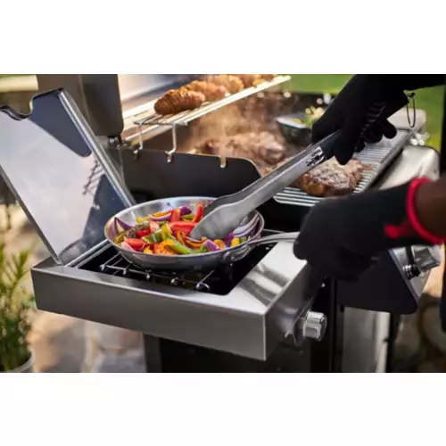 The three-burner Spirit SP-335 is equipped with everything you need to grill an entire meal outside. Simmer sauce or boil water on the side burner. Sear a perfect steak on the sear station. And toast buns or keep food warm on the warming rack as the main course finishes grilling below.