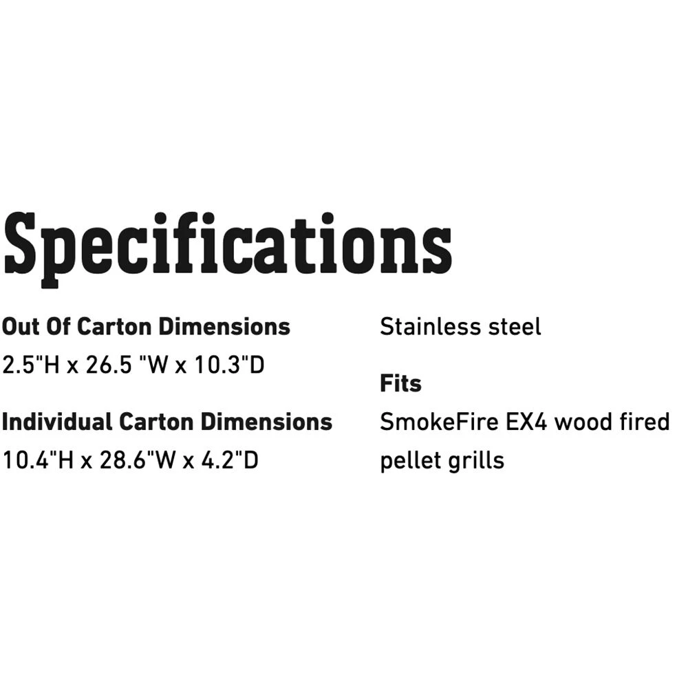 Weber Stainless Steel Folding Front Shelf for SmokeFire EX4 Grill (WEB-7002) offers a smart prep space solution to take your Weber SmokeFire Pellet Grill to the next level. Adding over 250 square inches of work area, this collapsible shelf is an excellent option for getting the most out of your grilling experience.